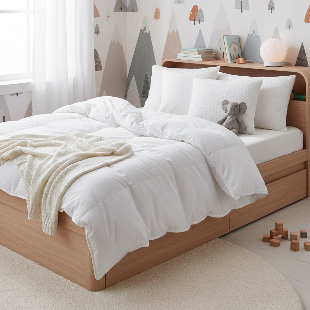 Unser Kinderprogramm umfasst Daunendecken und Kissen.